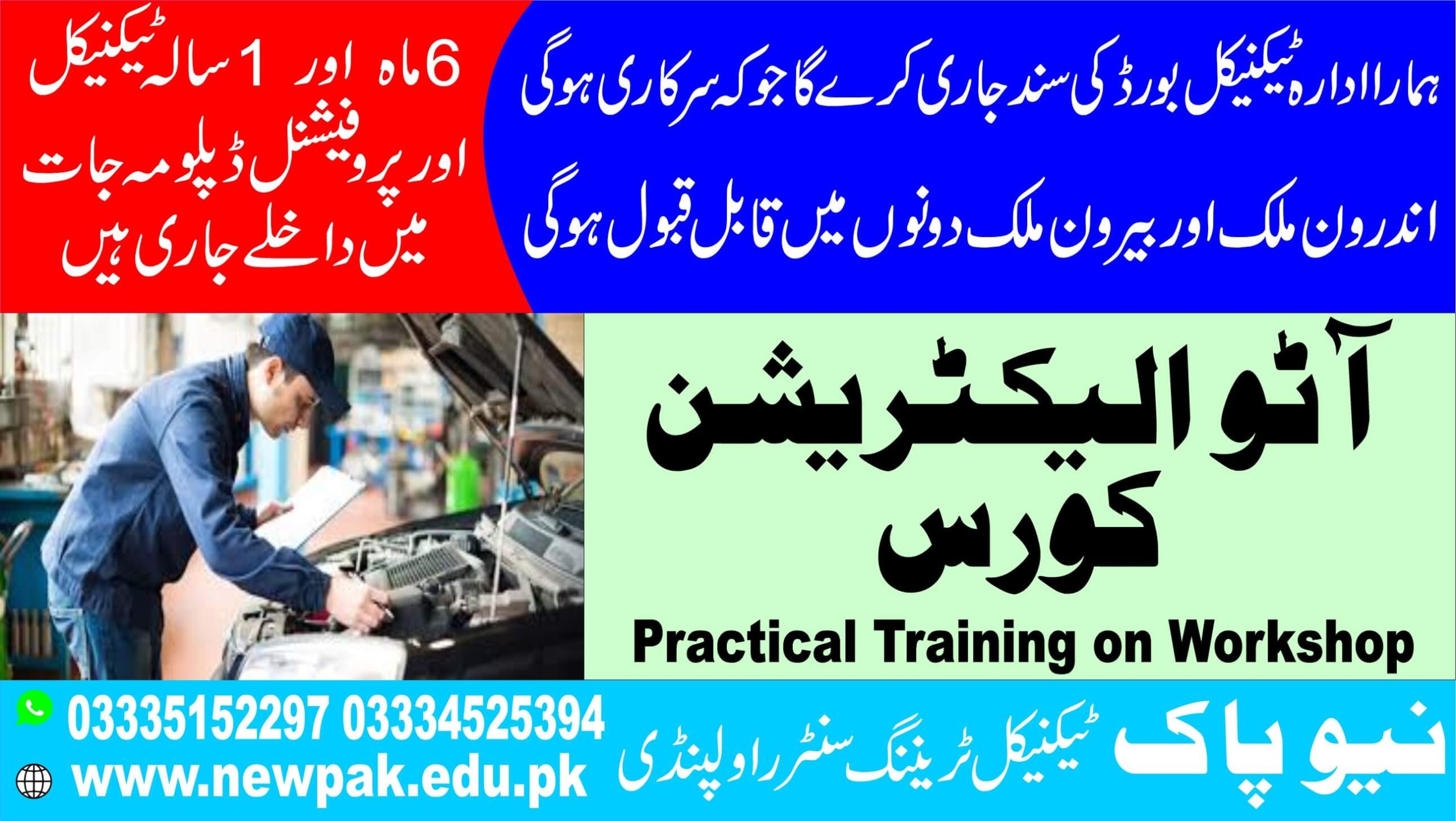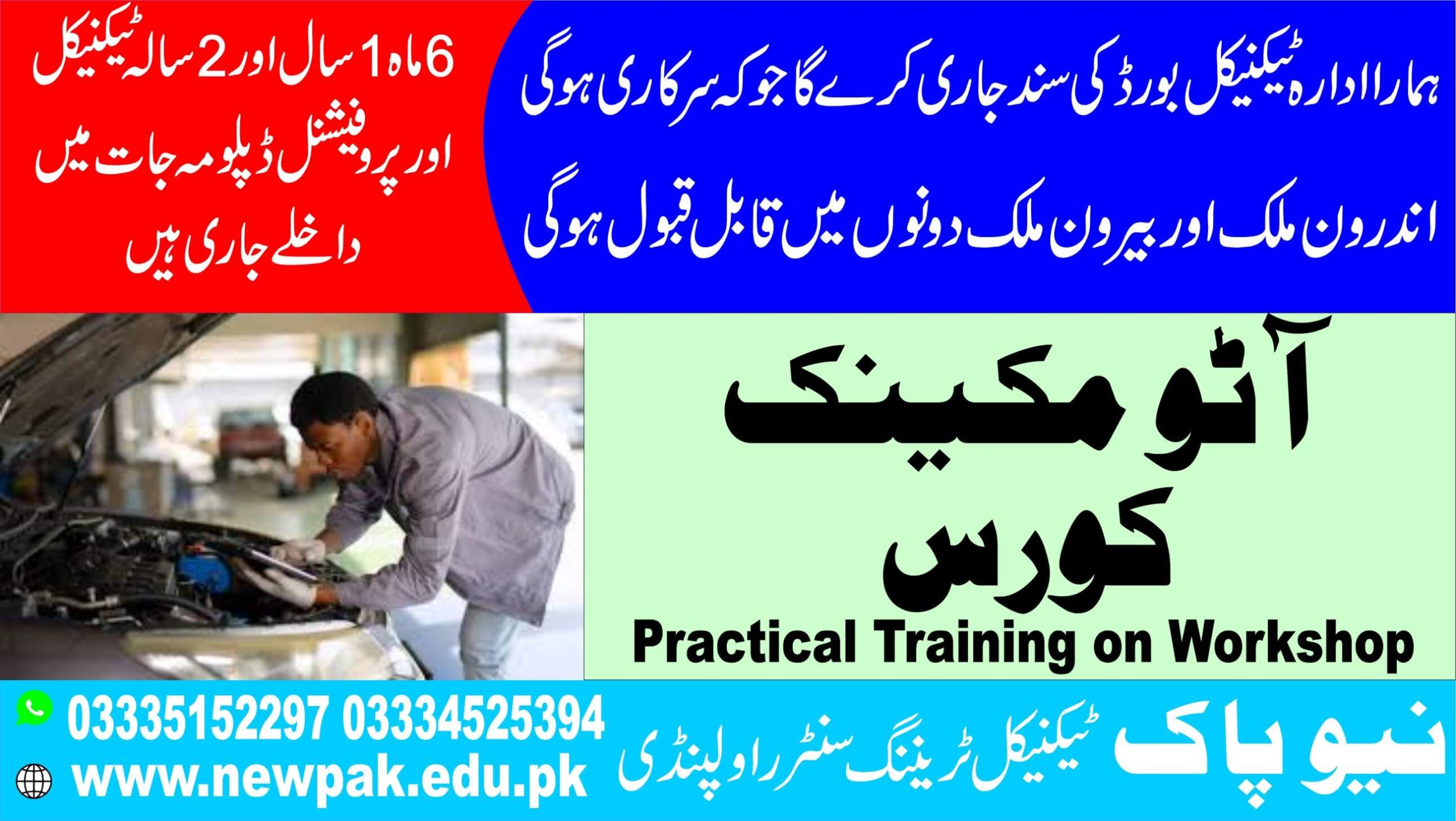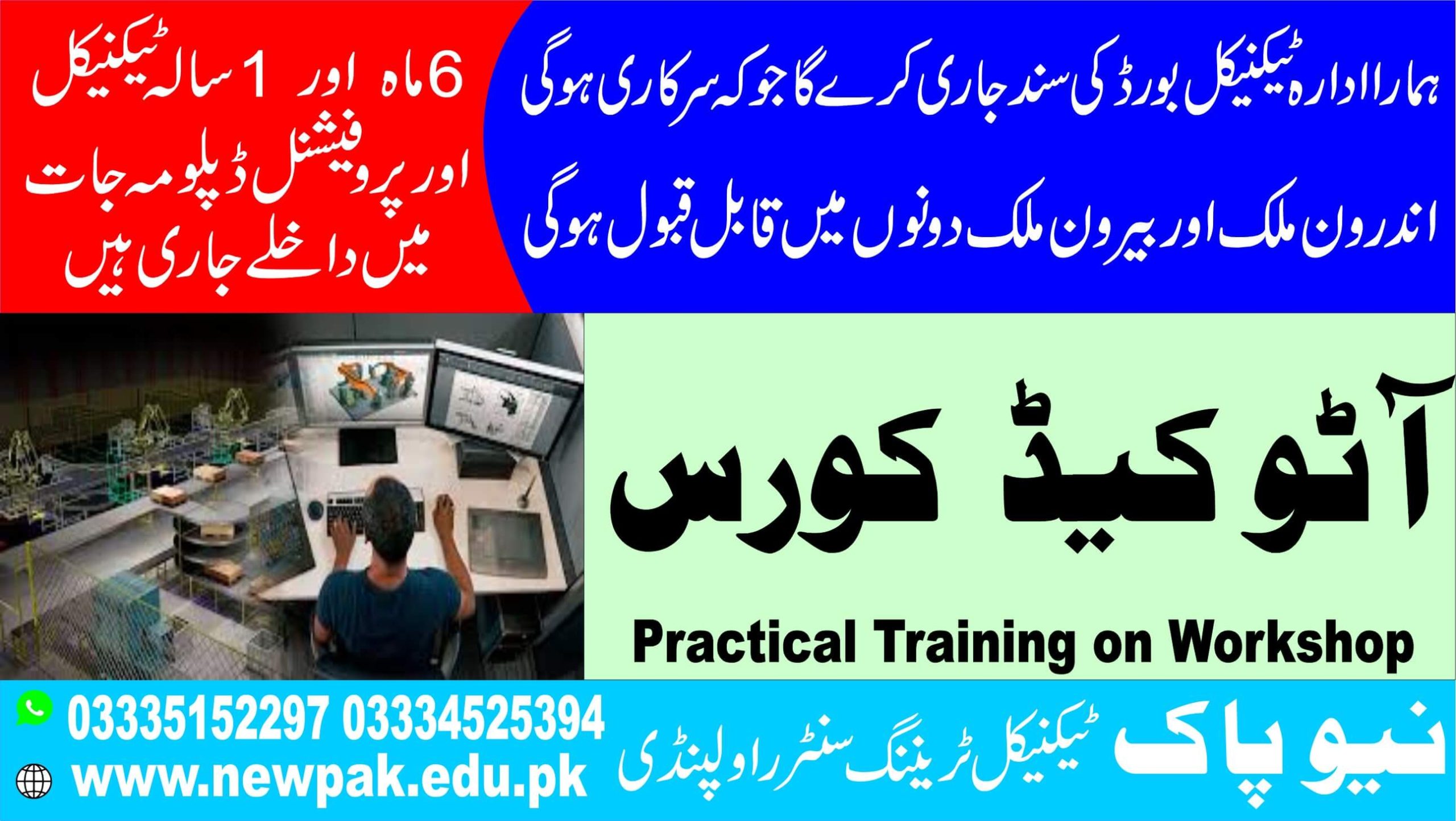 New Pak Technical Training Center in Rawalpindi is a well-known technical institute, recognized across Punjab, Azad Kashmir, and Khyber Pakhtunkhwa (KPK).